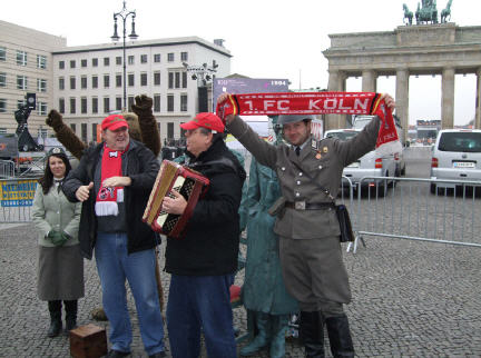 Da rieben sich die Berliner und so manch ein Tourist aus Fernost verwundert die Augen. Akkordeonmusik und kölsche Tön erklangen am Wahrzeichen der Hauptstadt, dem Brandenburger Tor. Wir waren aufgebrochen, um unseren FC und die zahlreich mitgereisten FC-Fans zum Auswärtsspiel gegen Hertha BSC musikalisch zu unterstützen.